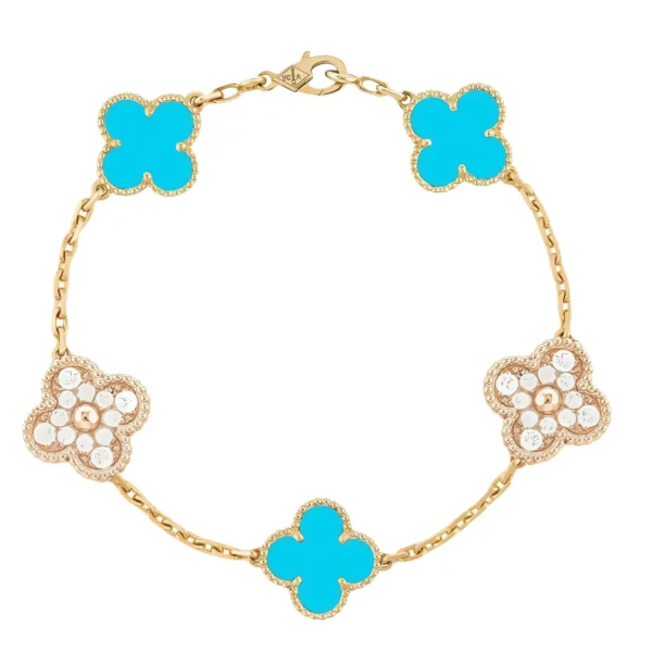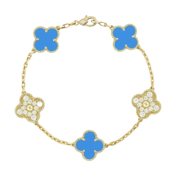 [VCA]CLOVER 5 MOTIF BLUE CHALCEDONY DIAMOND GOLD BRACELET