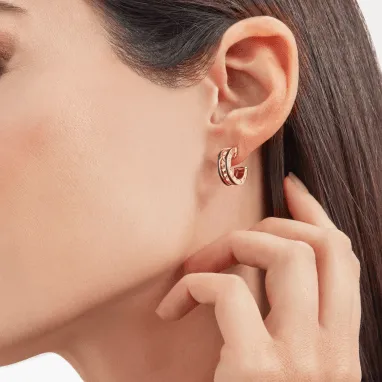 [BV]ZERO 1 ROCK PINK GOLD EARRINGS WITH STUDDED SPIRAL AND BLACK CERAMIC