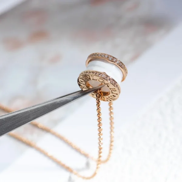 [BV]ZERO 1 WHITE CERAMIC PINK GOLD DIAMOND NECKLACE