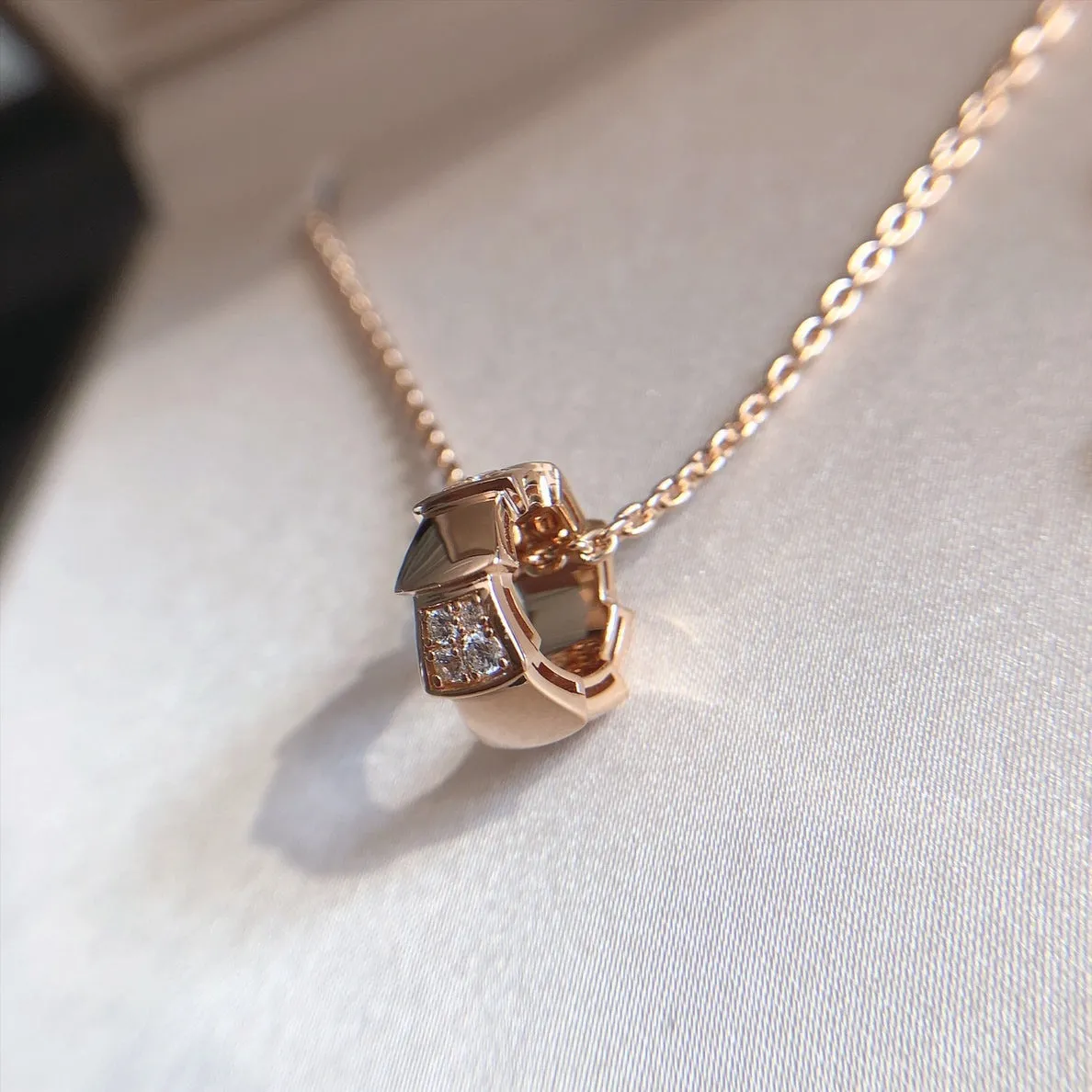 [BV]SERPENTI PEDANT DIAMOND PINK GOLD NECKLACE