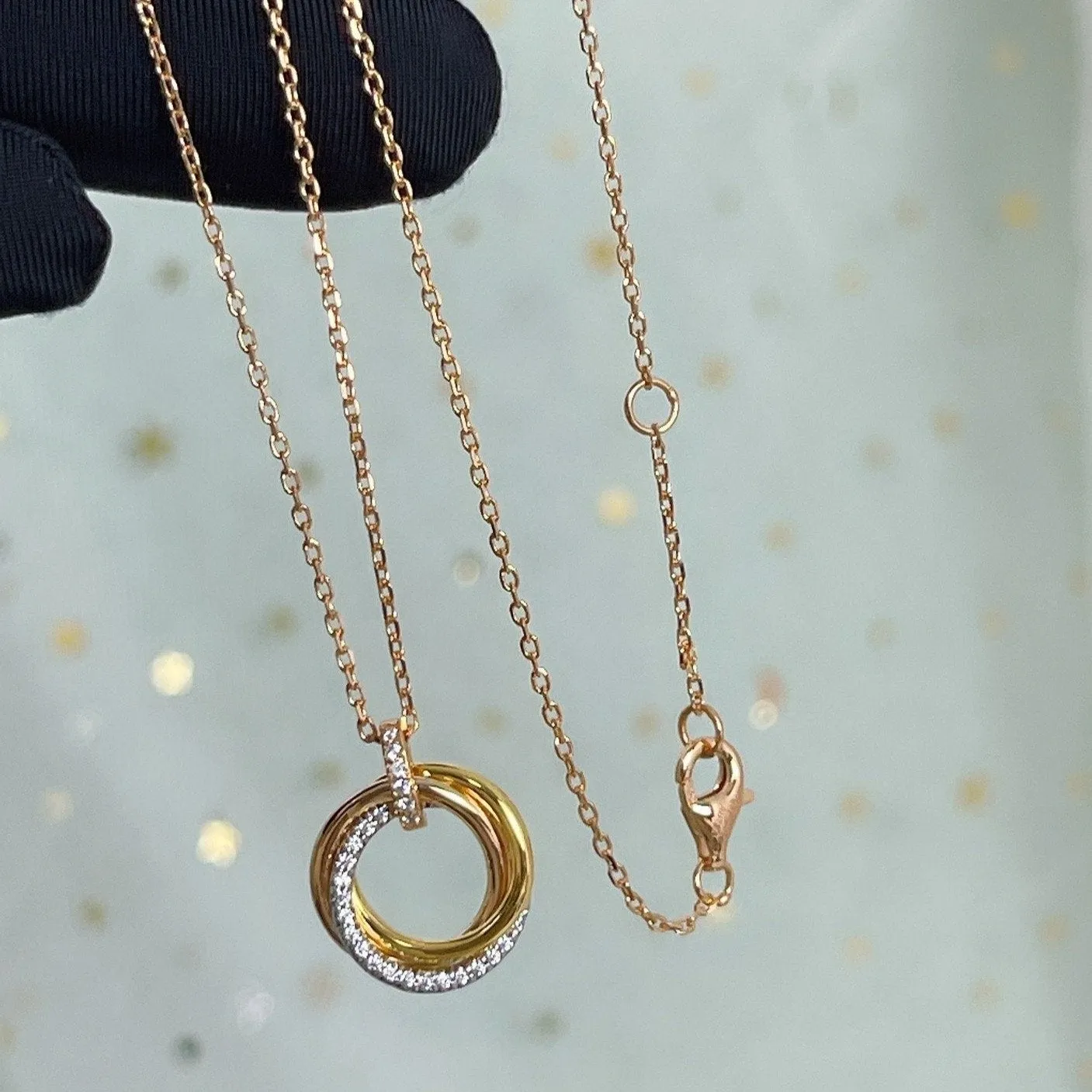 [CA]TRINITY NECKLACE SILVER GOLD PINK GOLD DIAMONDS