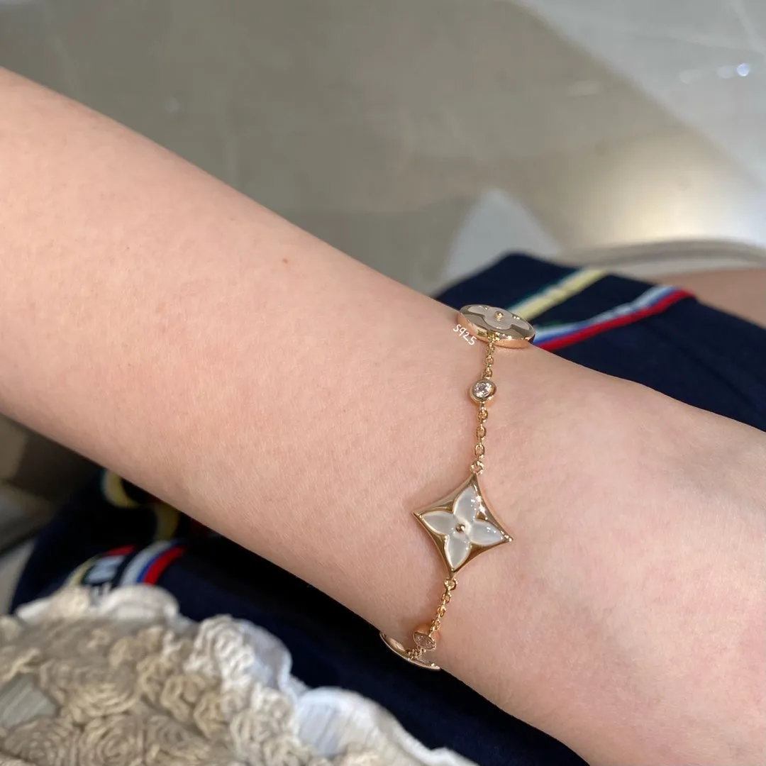 [LV]STAR AND SUN 4 MOTIF WHITE MOP GOLD BRACELET