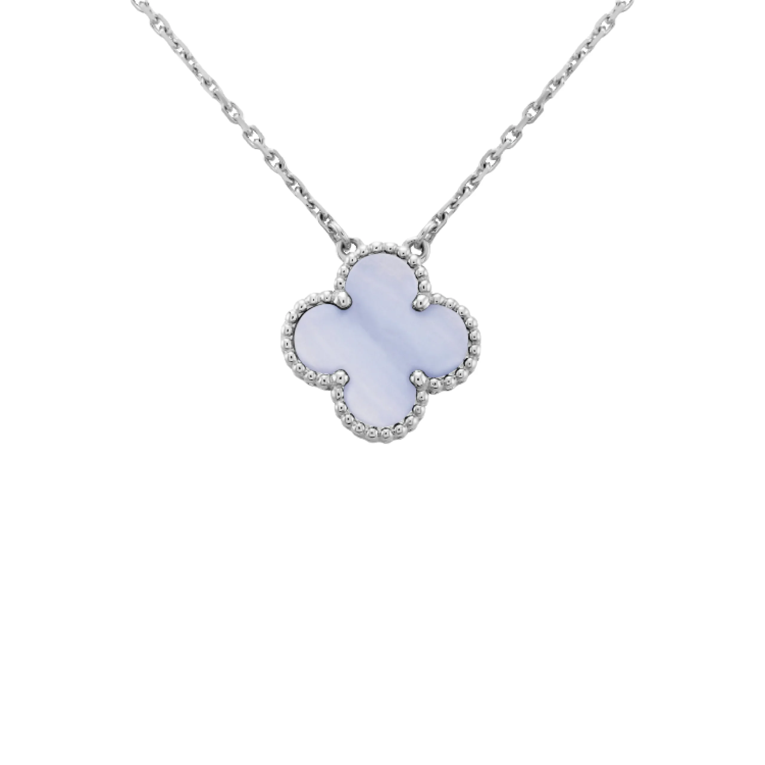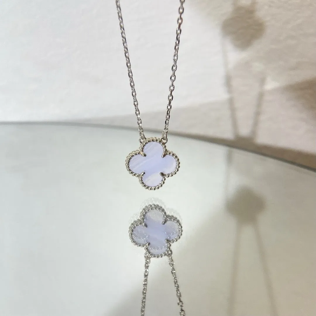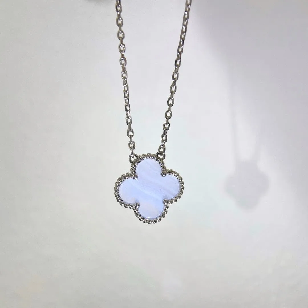 [VCA]CLOVER 15MM BLUE CHALCEDONY NECKLACE SILVER