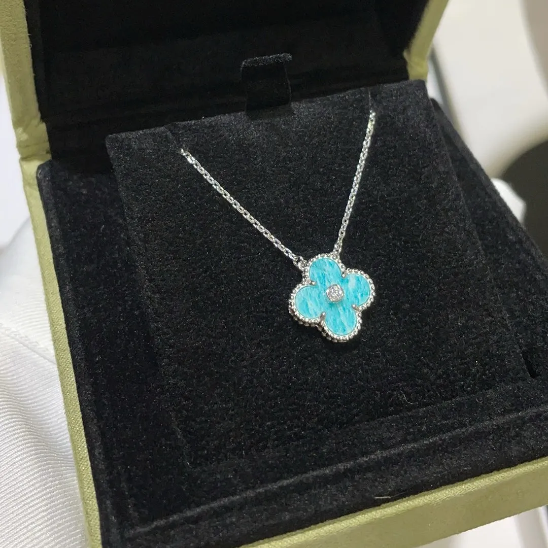 [VCA]CLOVER 15MM DIAMOND SVRES PORCELAIN NECKLACE SILVER