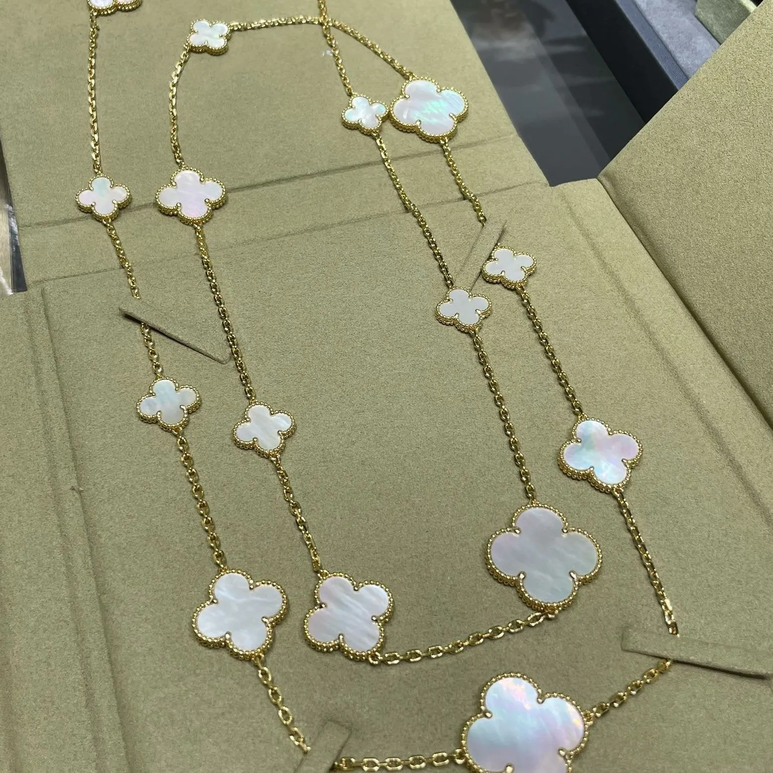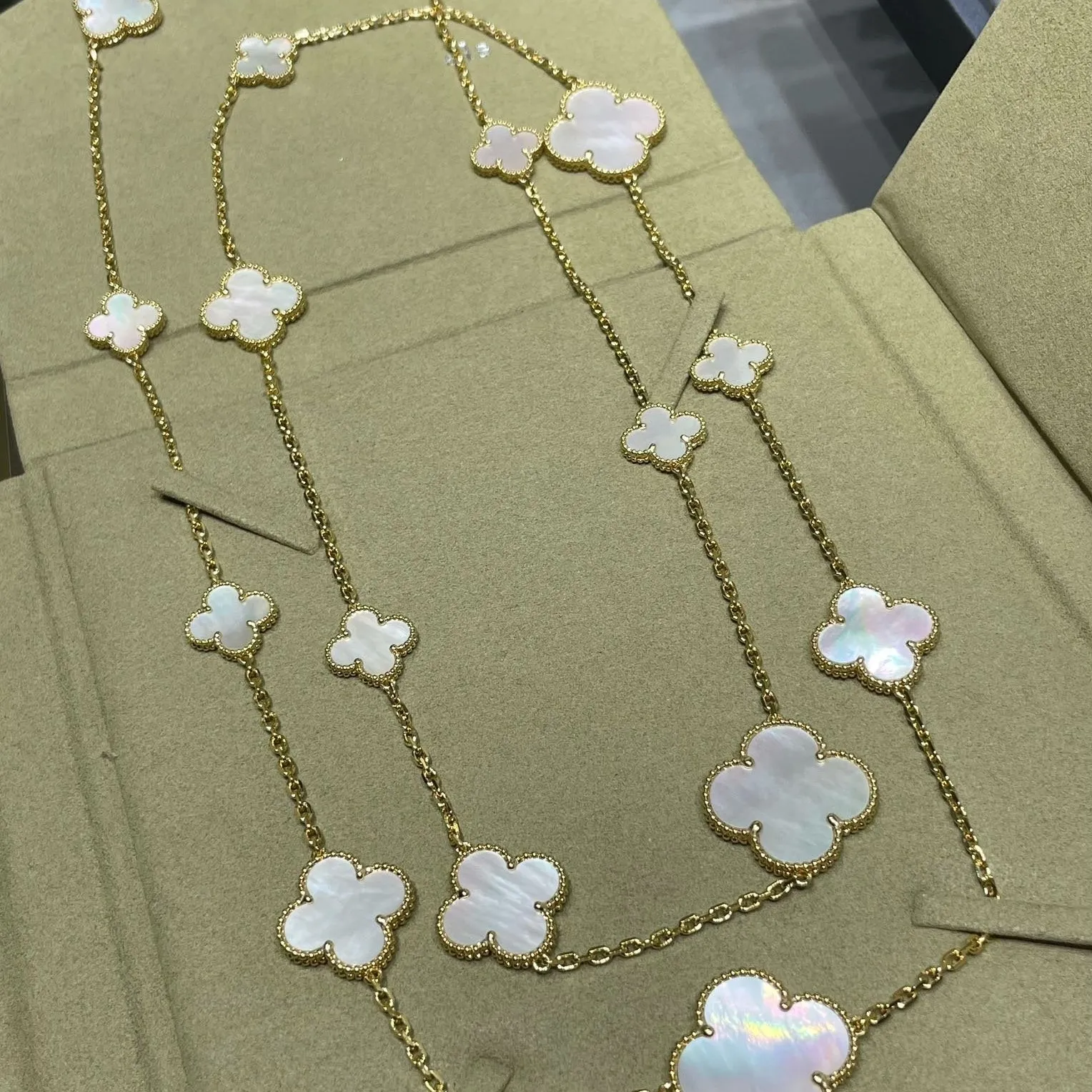 [VCA]CLOVER 16 MOTIF WHITE MOP GOLD NECKLACE