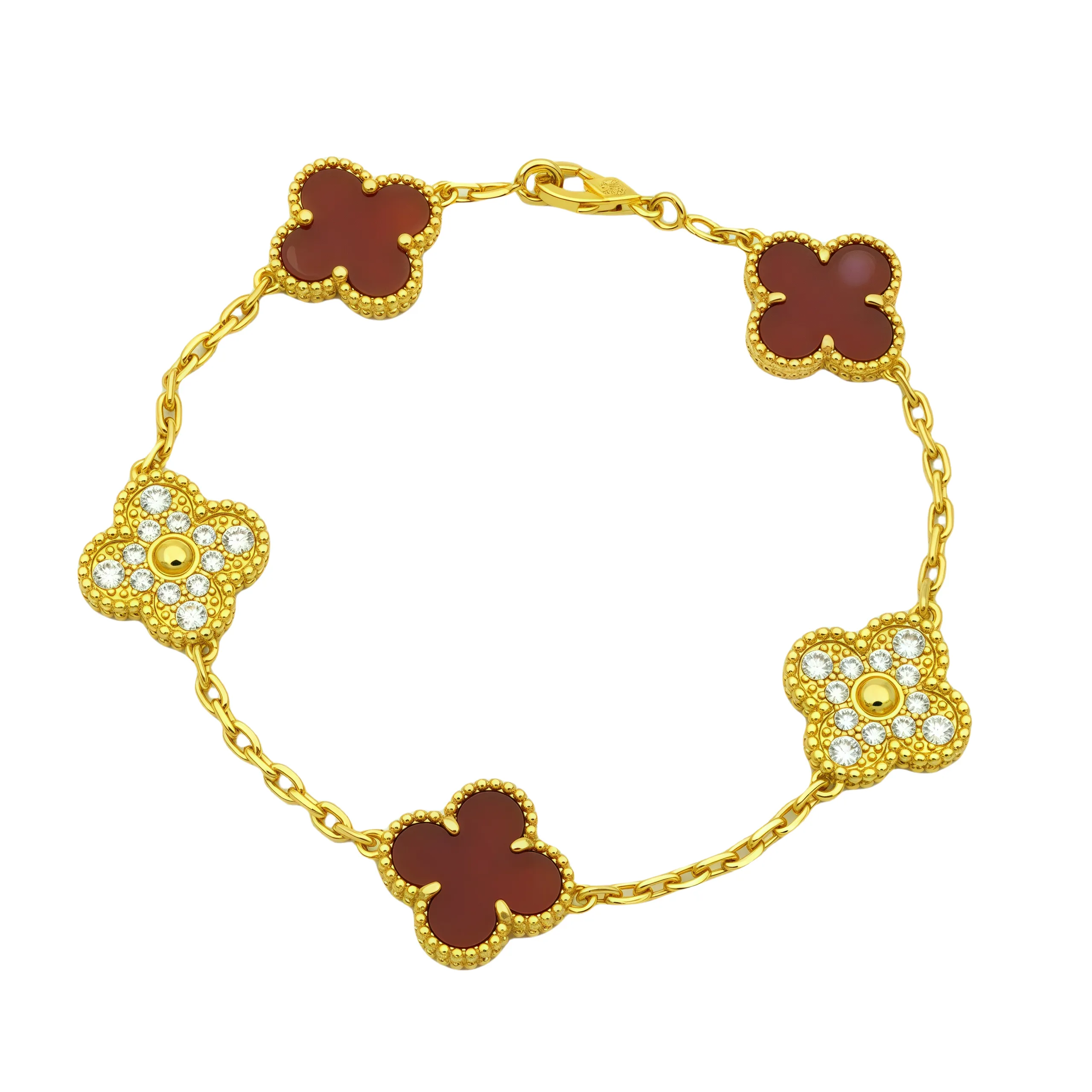 [VCA]CLOVER 5 MOTIFS CARNELIAN DIAMOND BRACELET