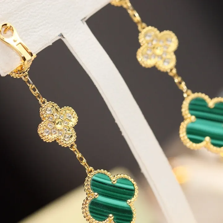 [VCA]CLOVER EARRINGS GOLD MALACHITE DIAMOND 3 MOTIF