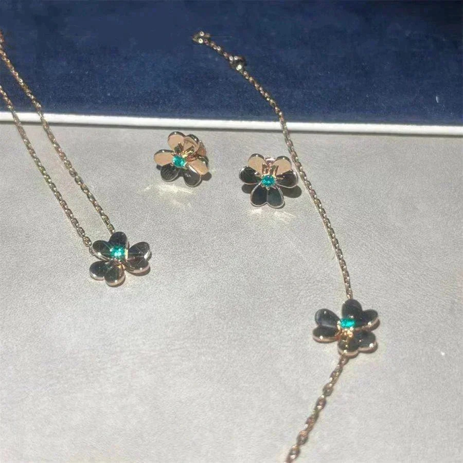 Graceful clover silhouettes in soft light — necklaces, bracelets, and sets for everyday elegance.
